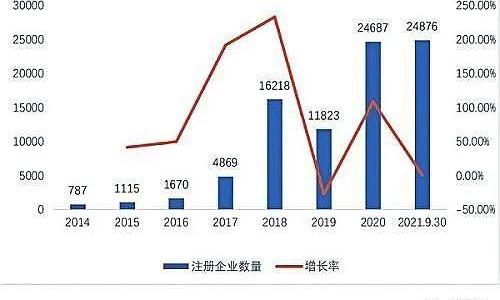 2014年-2021年区块链相关注册企业数量及增长率