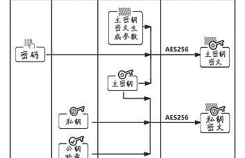 首先,程序生成32个字节随机数作为,然后根据外部输入的结合生成的一起对进行AES-256-CBC加密,加密结果为。