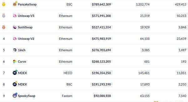 过去24小时去中心化交易所的交易量数据来源:Debank