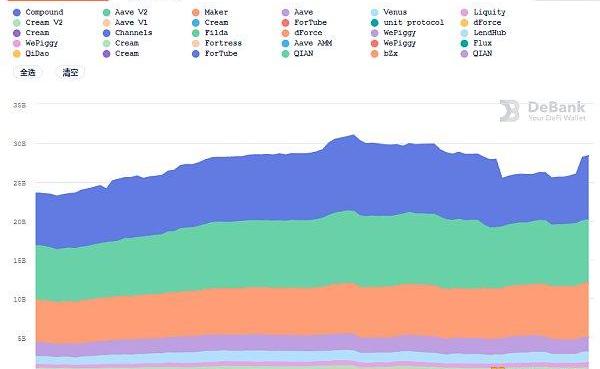 DeFi项目锁定资产前十排名及锁仓量,数据来源:Debank