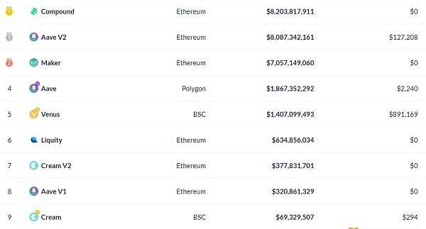 4.3BSC链上DeFi锁定资产:147.5亿美元
