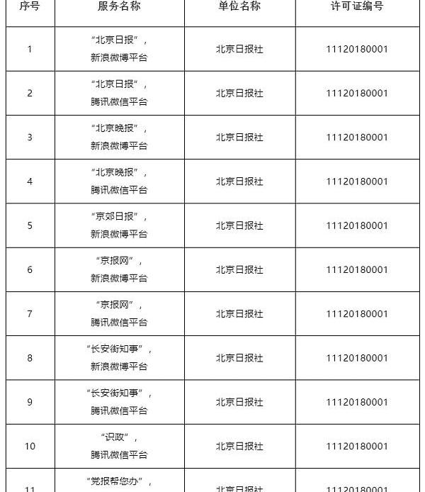 北京市获得互联网新闻信息服务许可的公众账号名单