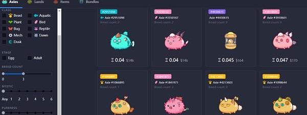 如以太坊上的热门游戏AxieInfinity,核心就是“宠物”,系统将它们统称为Axies。平台煞费苦心地设计了Axies的唯一性规则:Axies有500多种不同的身体部位可用,包括水生、野兽、鸟类、昆虫、植物和爬行动物部位。每种类型的零件都有四种不同的稀有度等级:普通、稀有、超稀有和传奇——而Axies可以是任何身体部位的组合,所以它们高度可变,而且通常十分稀有。