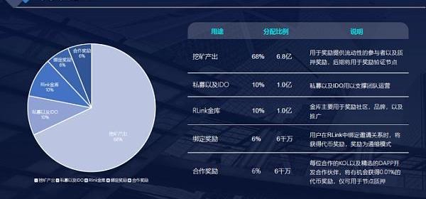 除了如何通过Rlink获得邀请推广获得奖励外,用户关注的还有为Rlink的治理代币RLT赋能的场景,预判RLT价值的潜在增长空间。通过官方消息可以看到,第一是DApp的质押,度过免费期后,按照规划,调用Rlink地址池合约时需要质押一定数量的代币获得权限;第二是节点质押,持币者可以将RLT质押到节点获得挖矿奖励,后期为验证节点奖励;第三是社区激励,用于激励推动社区建设以及推广行为;第四是投票治理,官方管理团队会将管理权交给社区投票,RLT同样可以做治理代币。