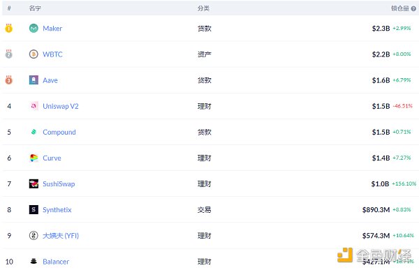 DeFi项目锁定资产前十排名及锁仓量,数据来源:Debank