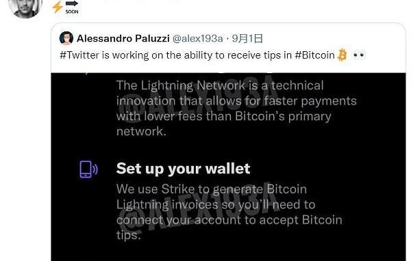 虽然现阶段的消息并非由Twitter官方披露,但Twitter产品负责人KayvonBeykpour转发了AlessandroPaluzzi9月1日关于比特币小费功能的帖子,还用闪电和箭号暗示此事将很快发生。