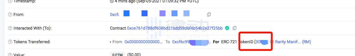 等交易确认后,玩家新开窗口打开Fantom浏览器,搜索自己的Fantom地址,找到刚刚完成的那笔交易,随即找到刚刚Mint出的TokenID。
