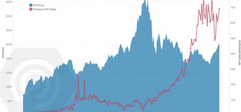 另一方面,NFT领域其基础资产方面尚未形成趋势。虽然以太坊的价格本质上是不稳定的,但NFT的采用、数量和使用量只会不断增加。虽然到目前为止,这两个指标之间还没有明确的模式,但看到一个更成熟的NFT市场如何对ETH价格的更大波动做出反应将是很有趣的。