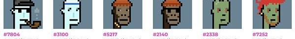 这些猿猴形象是一个NFT主题,且在BAYC之外也是如此。比如,有史以来最昂贵的四个CryptoPunk头像中的两个也是猿猴形象,如下图所示:
