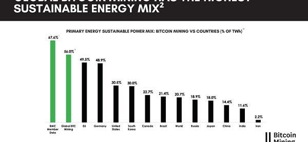 排除中国在外,来自比特币矿业委员会的最新数据显示,超过三分之二的会员,几乎占网络哈希率的三分之一,正在由低排放能源,而全球比特币采矿现在估计其能源需求的56%来自可持续来源。