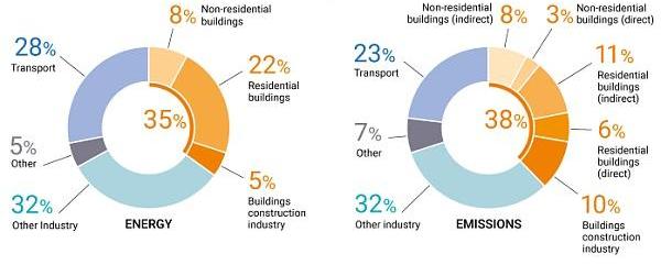 保守地说,保守地说,我假设联合国采用的是国际能源机构的数字33GT。为此,38%的排放量等于12,540吨的二氧化碳。联合国全球建筑与施工联盟(GlobalABC)?指出:“建筑运行的全球最终能源消耗约为130EJ,约占总最终消耗的30%,另外还有21EJ用于建筑物和建筑或总需求的5%”。
