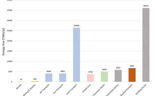 比特币的能源使用与运输行业相比