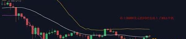 昨天晚上行情继续向上走了一个台阶,下午在频繁试探35000美元,到了晚上突然有如神助,一举站上35000美元不说,还突破了36000美元。36000美元这个位置值得说一下,此前我们也尝尝提及这个位置,有点像是强弱的分界线,当站上这个位置以后,市场的情绪会明显不一样,更何况这是近十天第一次站上这个位置,同时也站上了日线Boll中轨,而随后的回踩也是表示着,36000美元并未完全站稳,这也是今天应该注意的地方。