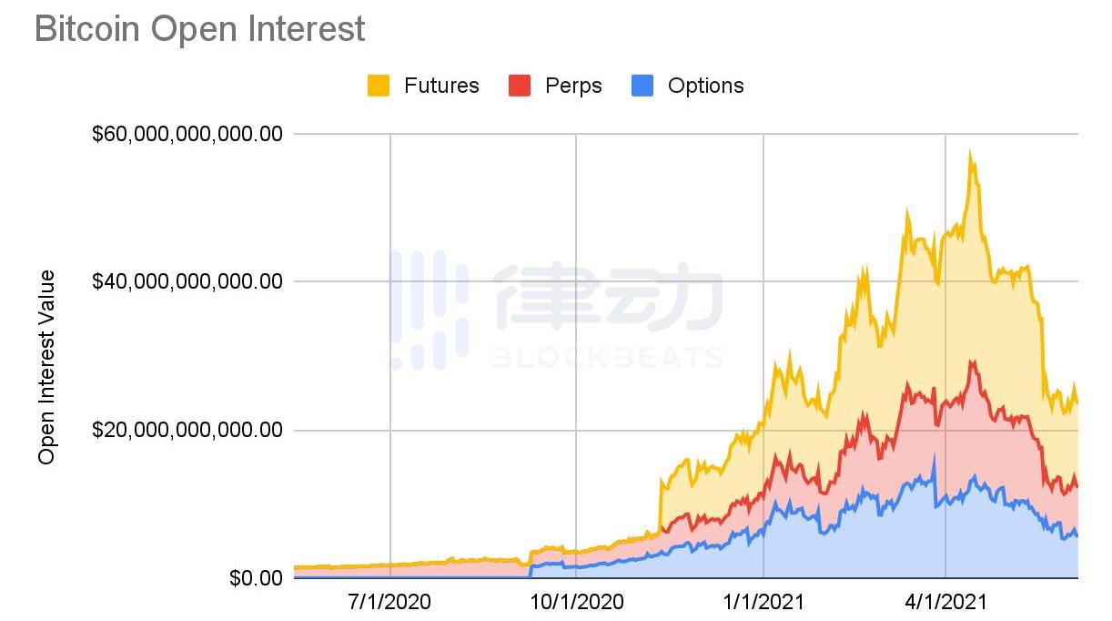 未平仓合约(OpenInterest,OI),粗略代表着头部中心化衍生品平台的杠杆头寸数量。?