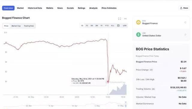受攻击事件的影响,BOG的价格闪崩,险些归零,从8.5美元跌至0.15美元,跌幅达到98%,损失约300万美元。