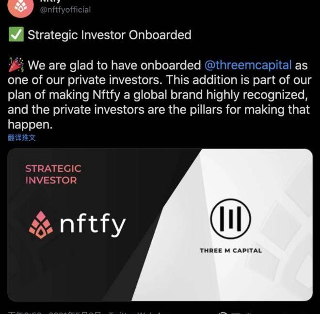 NFT碎片化平台Nftfy获ThreeMCapital战略投资