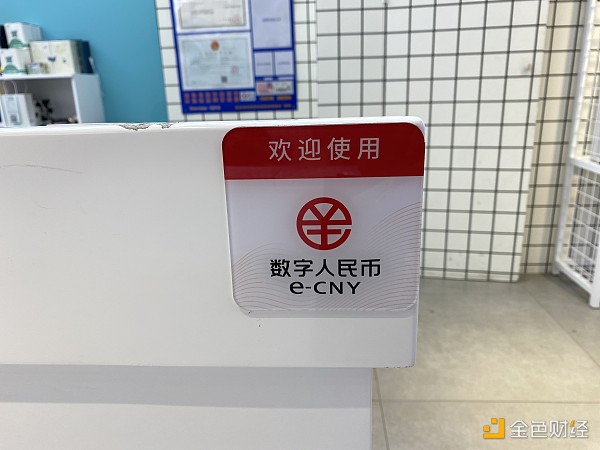 门口墙上贴着“欢迎使用数字人民币e-CNY”的标识