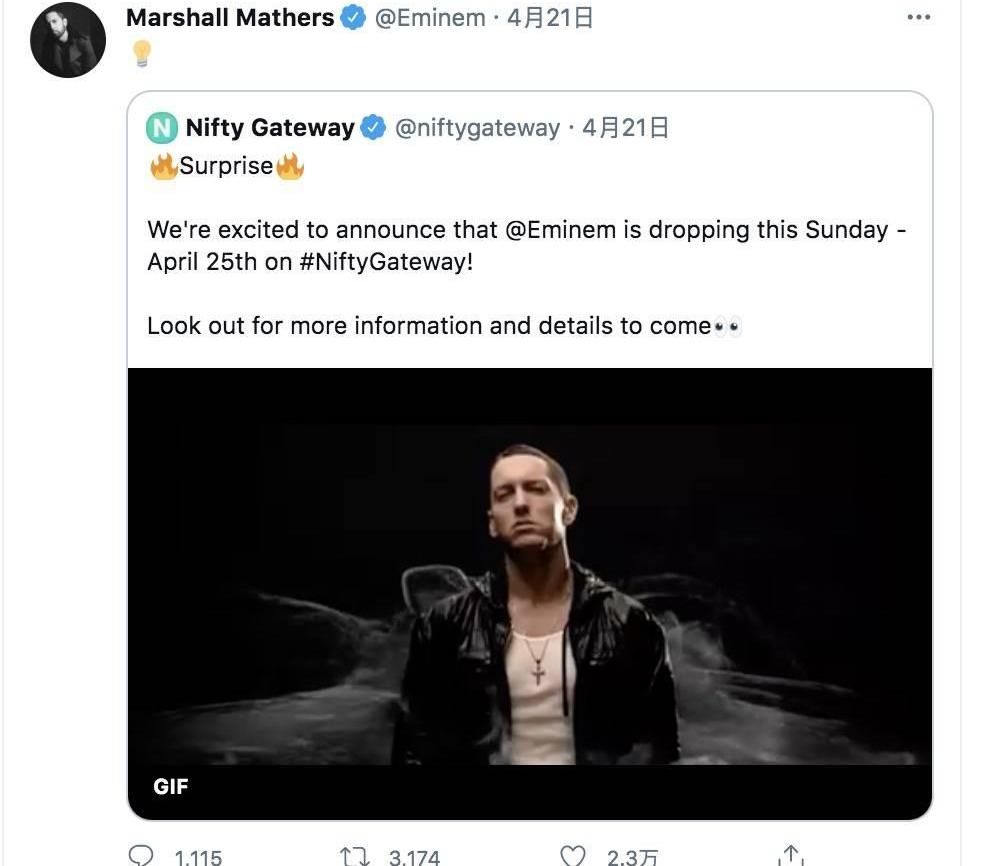 上周,NFT市场NiftyGateway宣布了一则重磅预告:嘻哈巨星Eminem将于4月25日在NiftyGateway发售自己的NFT作品。