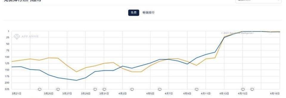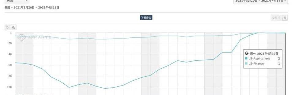 特别是自4月14日Coinbsed上市的这两天,这两个App的排名迅速提升。