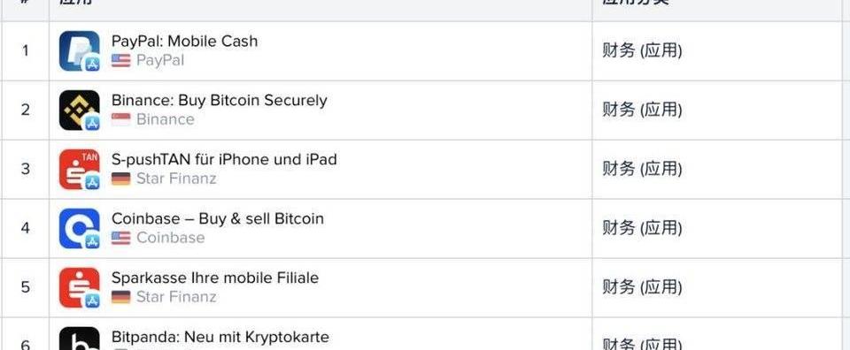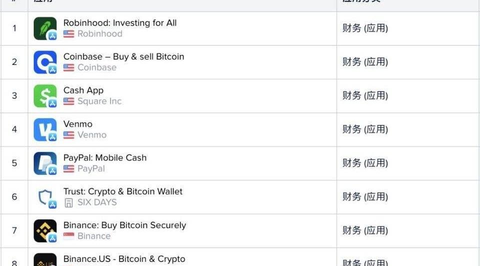 此外,有意思的是,6至8名都是币安旗下的应用,包括被币安收购的加密货币钱包Trust、币安交易所和币安美国。