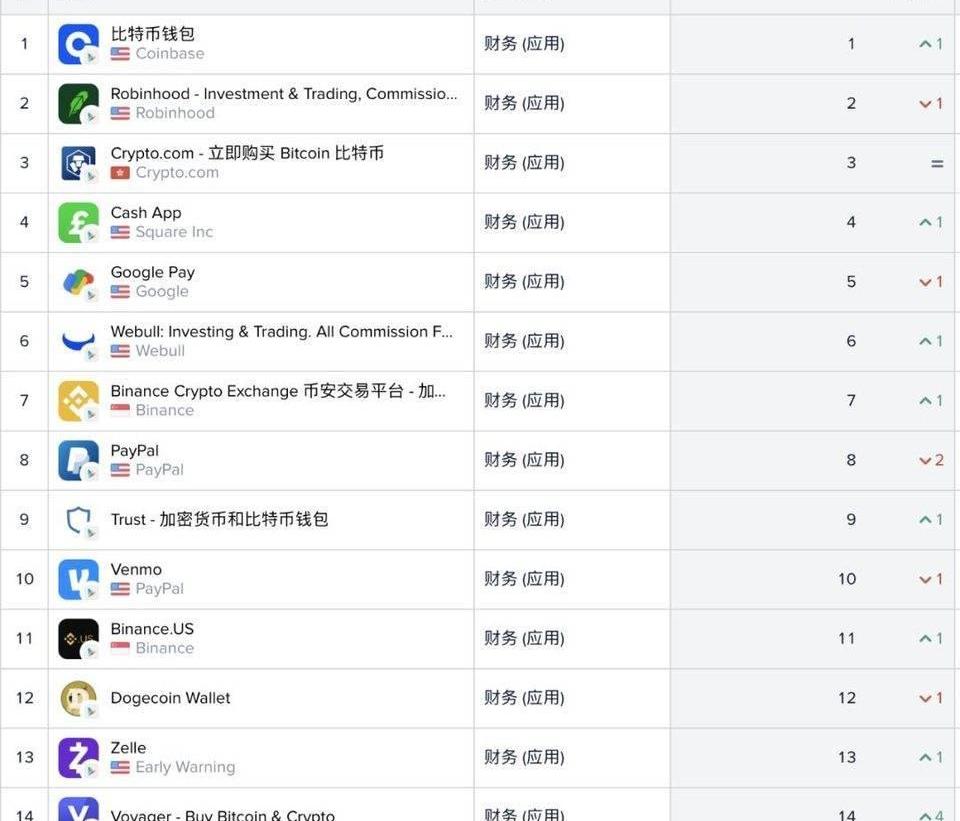 比如Coinbase在美国区GooglePlayStore中,位于所有应用的第二名,财务榜的第一名。