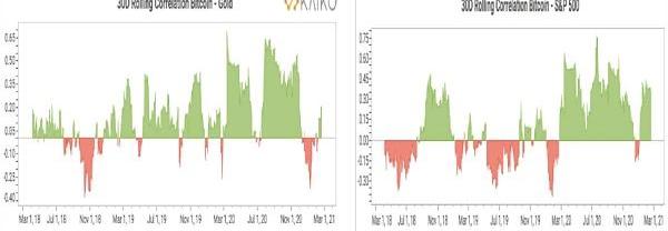 尽管不少投资者依旧将比特币与传统资产进行对标,如黄金,或者传统风险资产股票,但无论假设如何,比特币的定位都是一种独立的新兴资产。比特币与标普500指数、黄金的300日移动平均相关系数在近期创下了近年的低位,这表明比特币在摆脱人们对其与黄金、股市对标的思维逻辑。