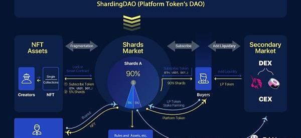 ShardingDAO是建立在以太坊和BSC上的NFT分解、合成协议。用户可以将NFT分割为标准的ERC20代币,从而在Uniswap等去中心化交易所上交易。收藏家也可以通过质押碎片化的代币并在协议中发起收购要约来获得整个NFT的所有权,若要约通过则可获得对应的NFT。