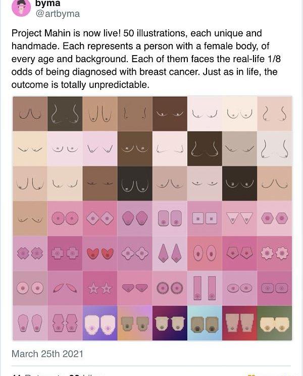艺术家byma发布了Mahin项目,该加密艺术项目由ChainlinkVRF开发,目的是提高公众对乳腺癌的关注度。