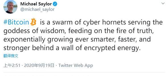 因此2020年8月11日,塞勒发推特宣布:Microstrategy接受比特币作为财政储备资产。同时把置顶推文设置成了如下内容: