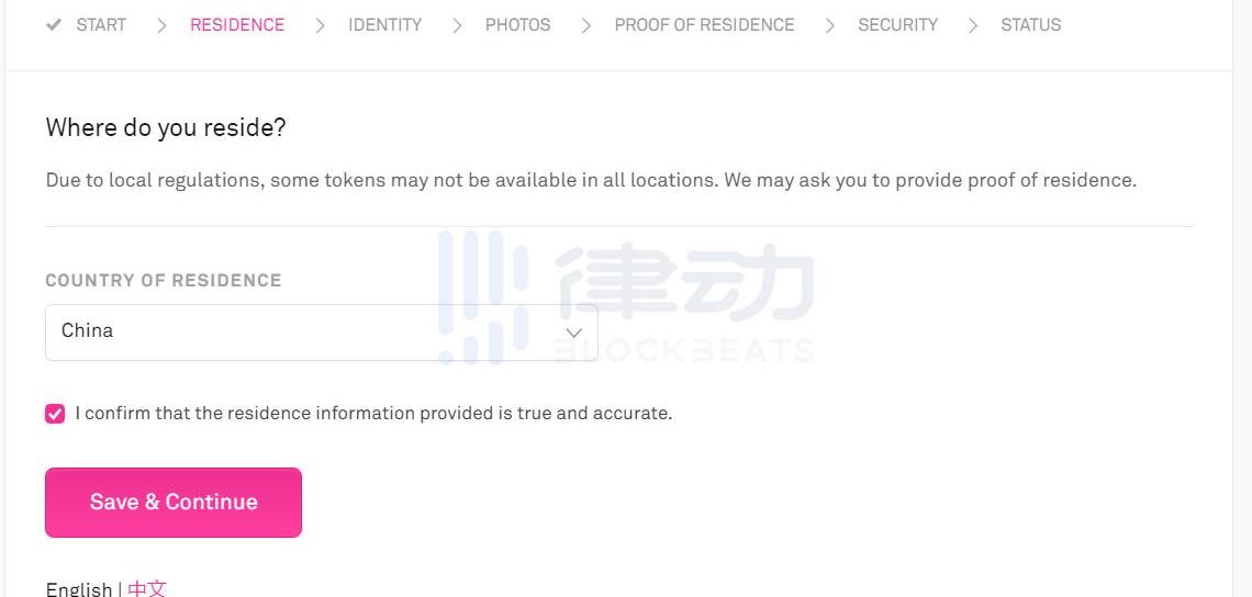 由于小编此前的验证信息,在选择相应的选项后会给出提示:注册国家不符合此次申购要求,暂时无法参与此次活动,不过仍可以使用CoinList的质押、交易等其他服务。
