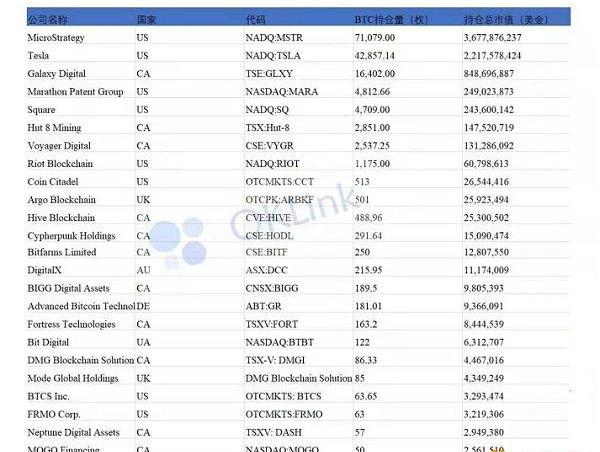 自2020年以来,越来越多的机构加入比特币扫货大军,一路开启“买买买”模式。据OKLink2月19日统计数据显示,全球上市公司中共有24家持仓比特币,其中MicroStrategy持仓超过7万枚BTC位居第一,Tesla以超4万枚位居第二。