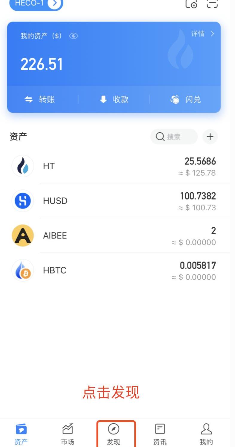 进入矿池后,TokenPocket钱包里如有了相应币种,按照以下步骤操作即可,以HT为例: