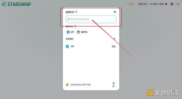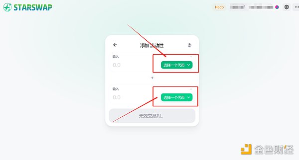 点击[选择一个代币]选择你想要添加流动性的代币种类:HSTS和HT。输入数量