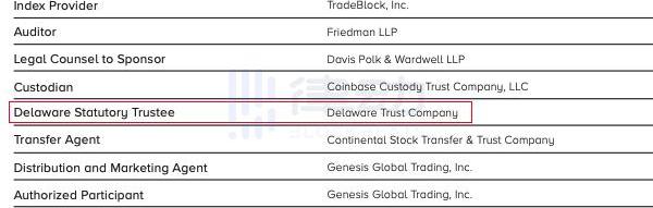 不过,根据灰度官方资料显示,灰度投资备案的登记代理人是特拉华州信托公司,这是一家受监管的公司信托和代理服务提供商。根据特拉华州法律要求,每个法定实体都必须使用一家登记代理人,以保证能够在营业时间接收法律文件。