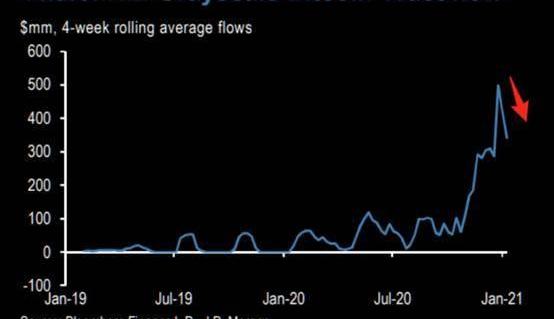 摩根大通警告,如果流入“灰度信托”的资金数量大幅放缓,比特币回调的概率将大增,出现类似2019年的大幅回调将不可避免。