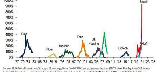 美国银行在周末的报告中将比特币形容为最近几十年来全球的“资产泡沫之母”。该行的分析师哈内特在报告中写道: