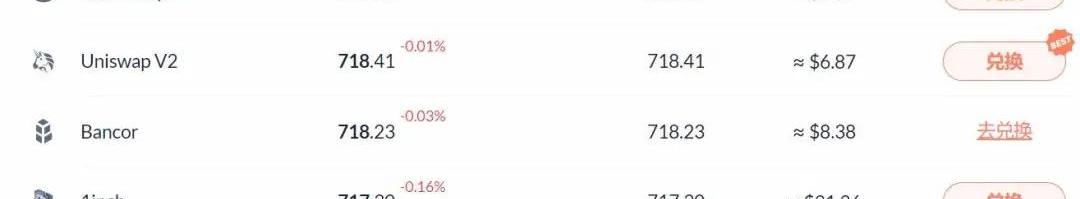 不过正因如此,普通用户的小资金量兑换,反而是在Uniswap或Sushiswap这类单一DEX上实现更具成本优势,很多人基本与1inch无缘,简单从DeBank提供的“Token兑换”界面,简单比较一下也可以验证: