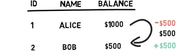 如果第一个更新执行了,但第二个更新因为某些原因失败了,会怎么样?(也许id=2在系统中并不存在,但我们犯了一个错误,以为这是Bob的id)
