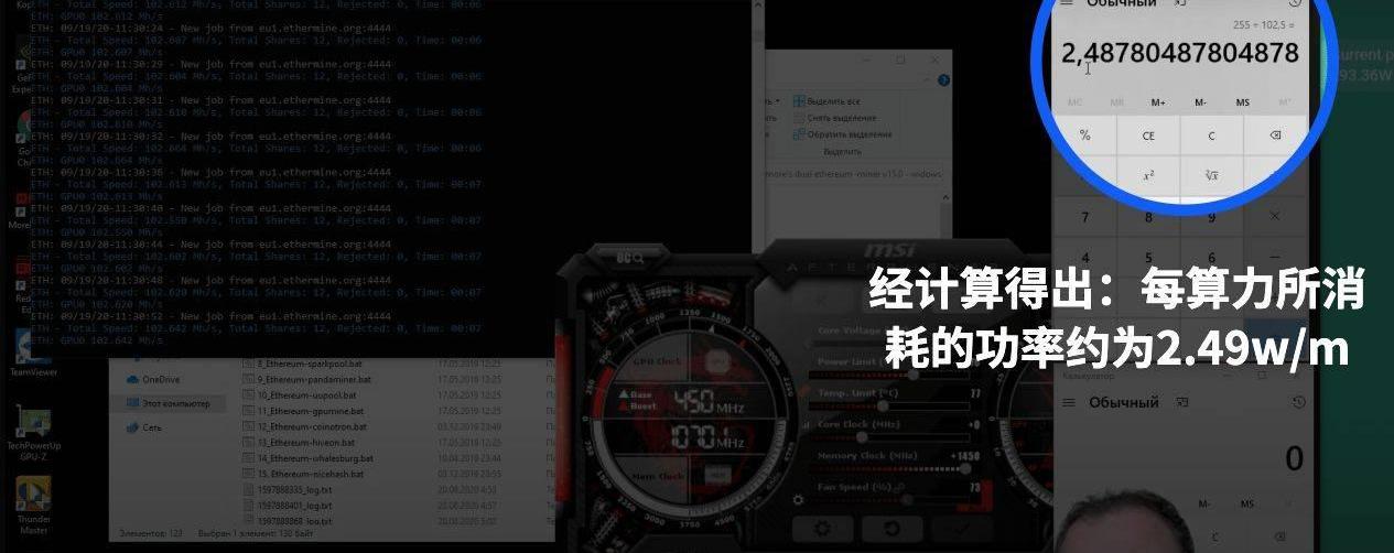 经计算,算力所消耗的功率约为2.49w/m,这是显卡的最佳能效比。