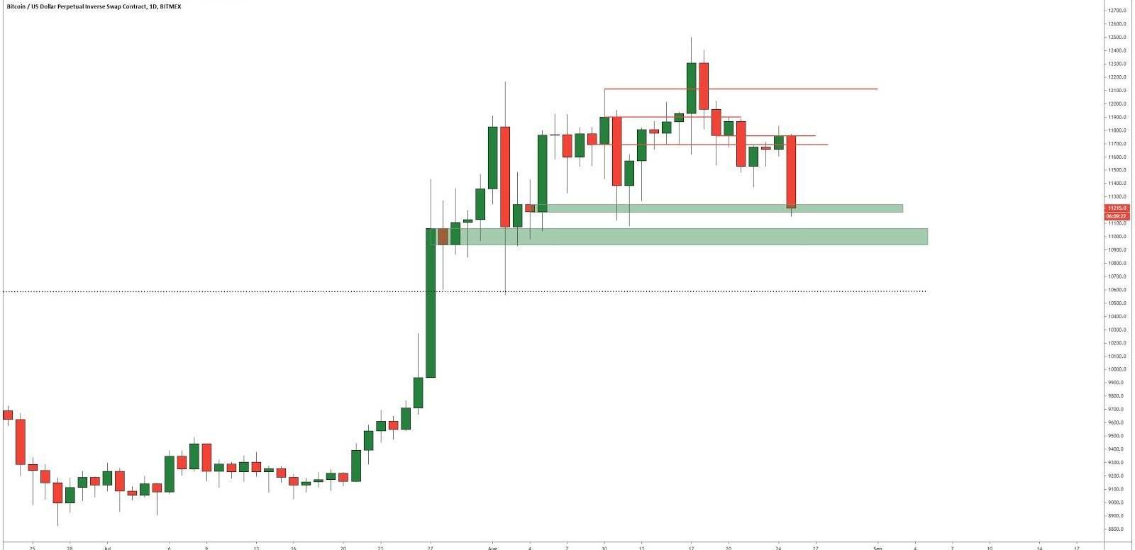 “比特币正在接受测试。我认为它撑不住。我通常不预测目标价格,因为我在链上只做定向分析。但是,这是我基于技术分析出的关键支持位。顺便说一句,如果比特币跌破10900美元,则可能会回补CME缺口9700美元。”