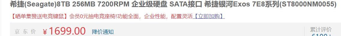 第一、大容量硬盘本身的成本比容量小的硬盘高很多,目前行业内多使用西部数据、希捷等主流品牌的硬盘,以希捷为例,某一京东自营店铺同一级别硬盘,8T和16T售价分别为1699元和4289元,单T价格分别为212元和268元。