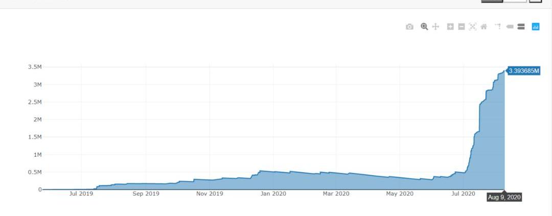 首先是有效保额,从数据看在近期迎来了爆发式增长,这和?NexusMutual新发布的Staking机制有直接关系,同时和DeFi市场的火热以及流动性挖矿的盛行也有所相关。