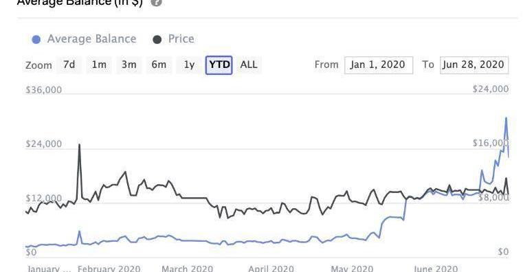 三、6月底WBTC持有者的平均余额一度突破3万美元