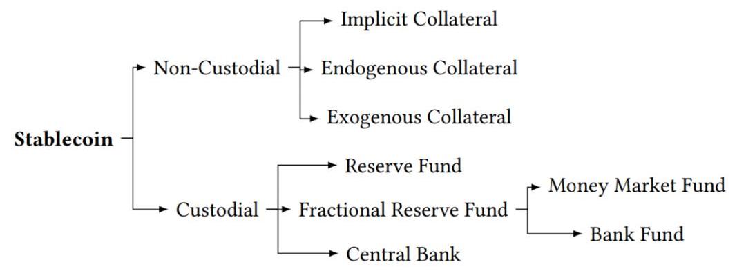 下面我们从稳定币的几种典型类型出发,描述不同功能组件的风险和权衡的维度。托管型稳定币和非托管型稳定币之间的区别显而易见,前者依赖于对第三方的某种信任,后者的目的是去信任化。