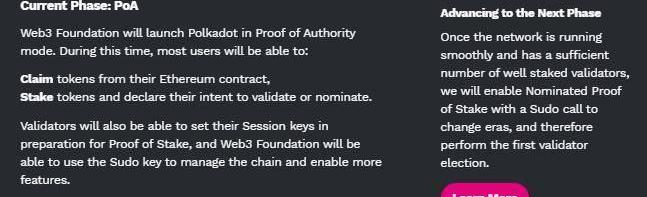 DOT持有人在该阶段可进行代币映射,并选取验证人参与代币质押,但不能进行代币转移和交易。