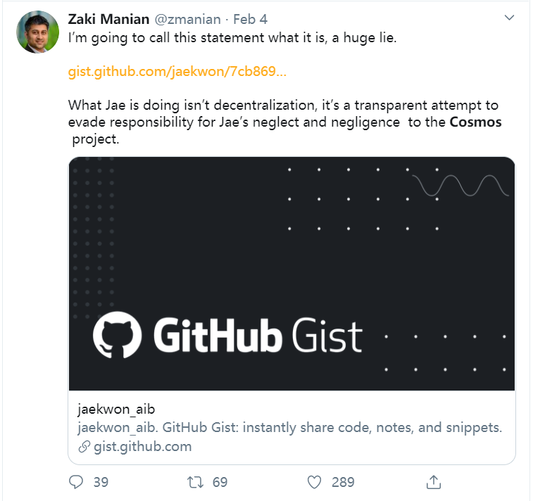 不料,Jae发布后,Tendermint团队的Zaki在Twitter公开指责Jae,并提出了8条缘由。