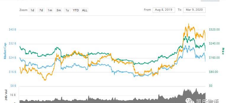 诚如我前文所述,本质上石油暴跌最终带来的还是人民币、美元与比特币的三国杀。很多人都看到了比特币的暴跌,但是并没有发现其仍然仅仅在筑底的过程中。以太坊也并没有完全跌破我在直播中表述的200美元的底部。