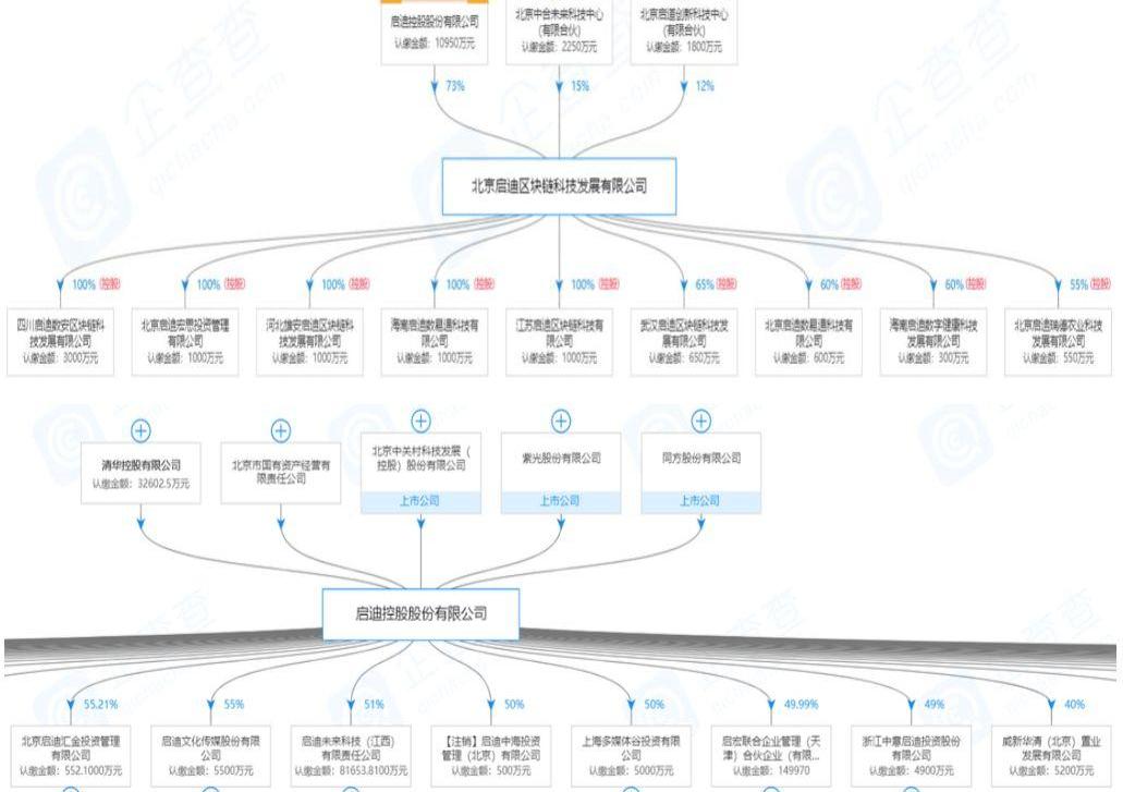 图3:启迪区块链公司及其股东启迪控股的股权结构情况