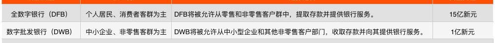 表2:新加坡金管局规定的两类数字银行牌照定位