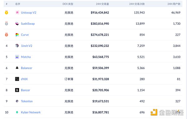 2.过去24小时去中心化交易所的交易量:20.5亿美元